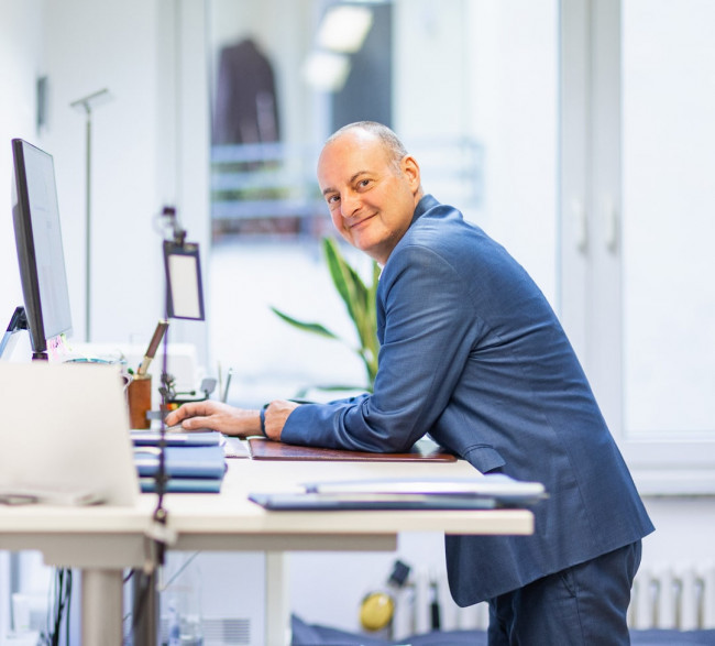 Anwalt Arzthaftungsrecht Düsseldorf Marco Rath am Schreibtisch